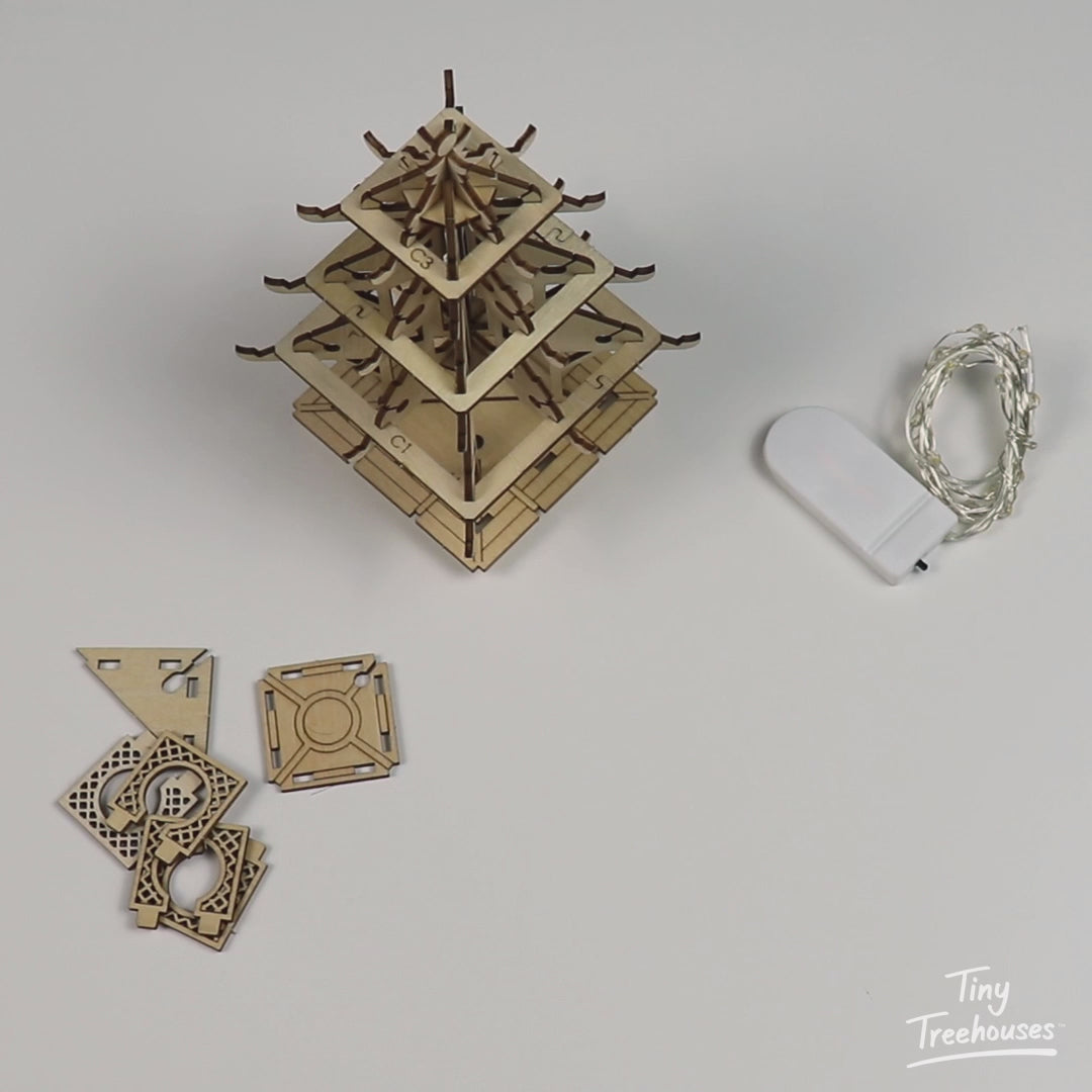 These lights have a USB plug instead of a battery compartment, so you can plug it into a USB port to light up your Tiny Treehouse. Build this set of lights into your model instead of the battery powered lights that come with your Tiny Treehouse kit, and you can enjoy the cozy glow of your creation all night long! Great if you’d like to use your tree house as a night light.